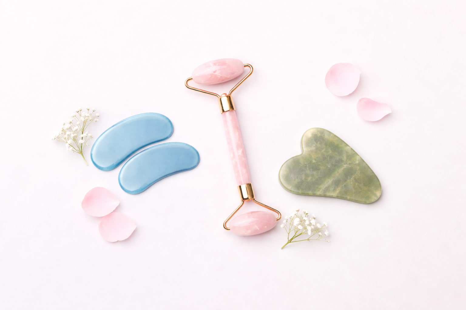 De rozenkwarts gezichtsroller masseert zachtjes de huid, helpt spanning in het gezicht te verminderen en ondersteunt een frisse, gezonde uitstraling — elke dag opnieuw.